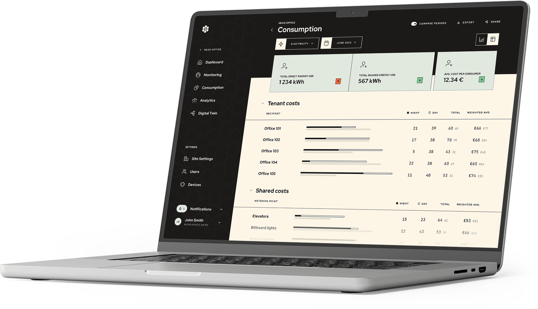 Jälgi prognoose energiakulude kohta sõltuvalt hoone kasutuskoormusest, ilmast ja börsihinnast.