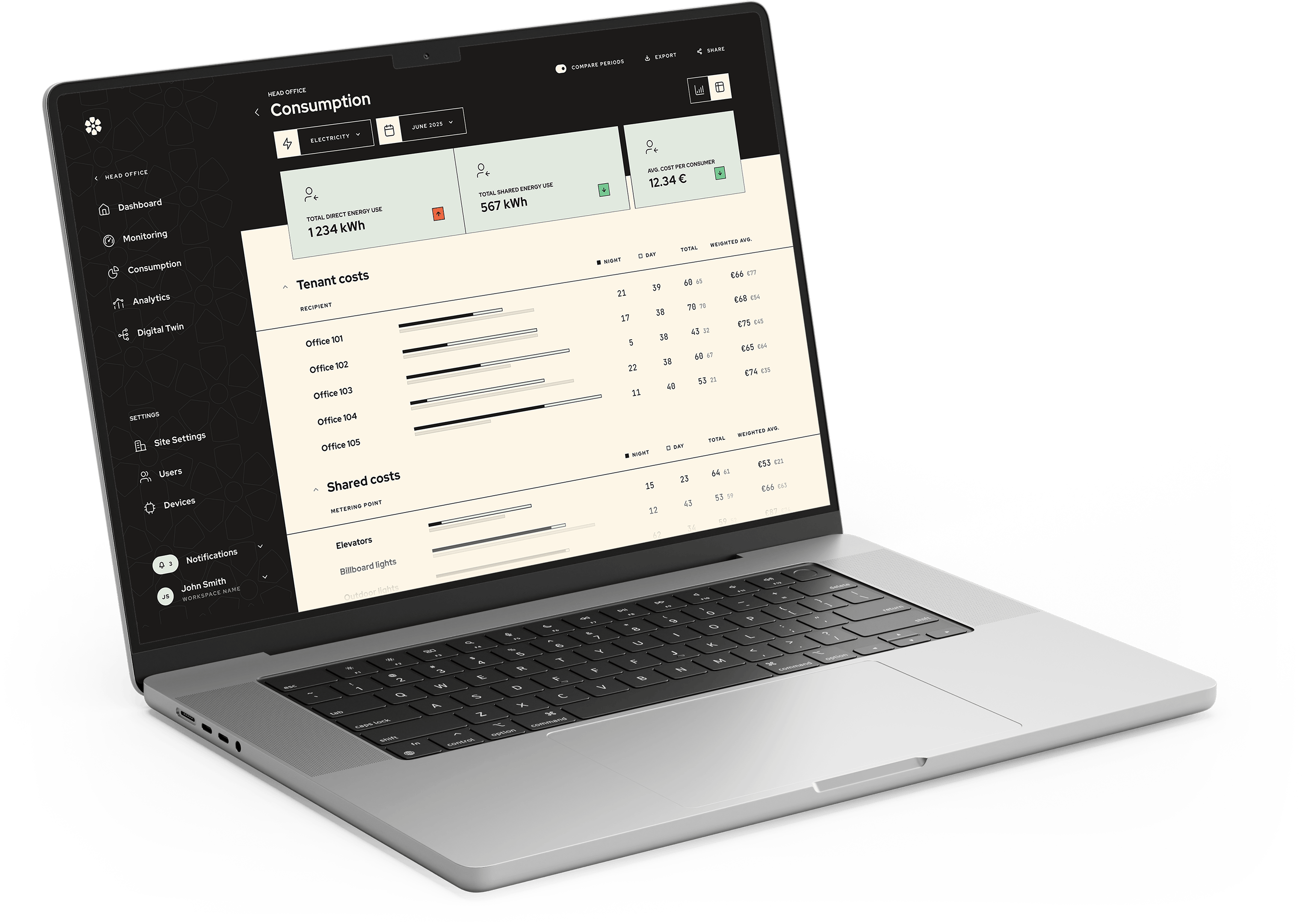 Jälgi prognoose energiakulude kohta sõltuvalt hoone kasutuskoormusest, ilmast ja börsihinnast.